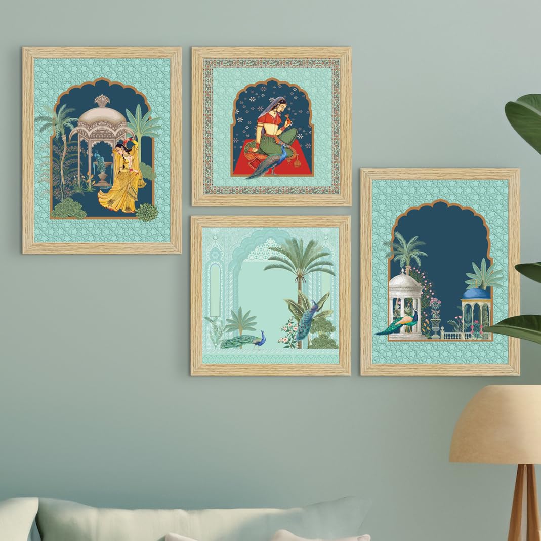 Indian Madhubani Art Paintings with Frame (Set of 4)