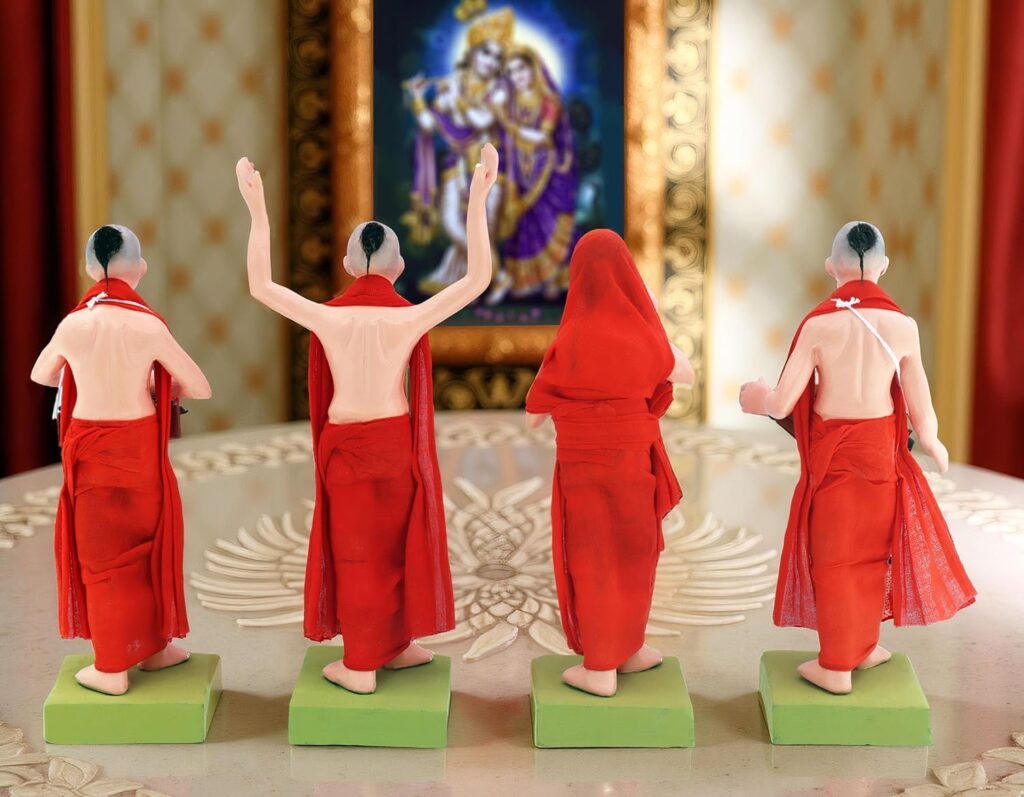 Inspired by ISKCON (International Society for Krishna Consciousness), each figurine represents a Vaishnava devotee joyfully engaging in Harinam Sankirtan—singing the glories of Lord Krishna through music and dance.