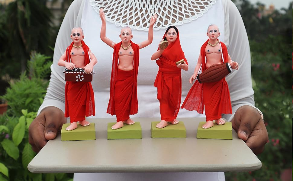 Inspired by ISKCON (International Society for Krishna Consciousness), each figurine represents a Vaishnava devotee joyfully engaging in Harinam Sankirtan—singing the glories of Lord Krishna through music and dance.