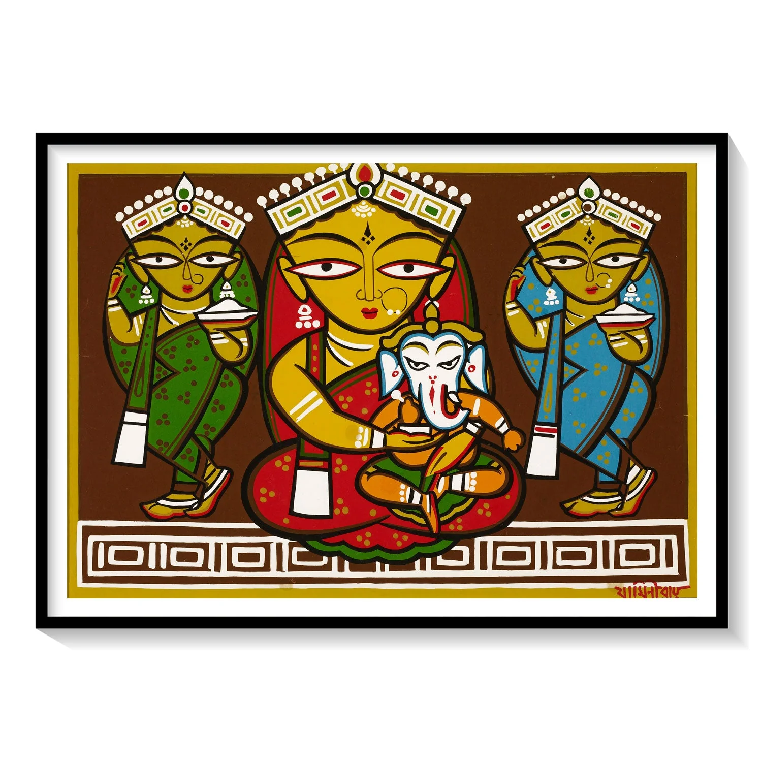 Jamini Roy Paintings: Durga & Ganesha 16×20