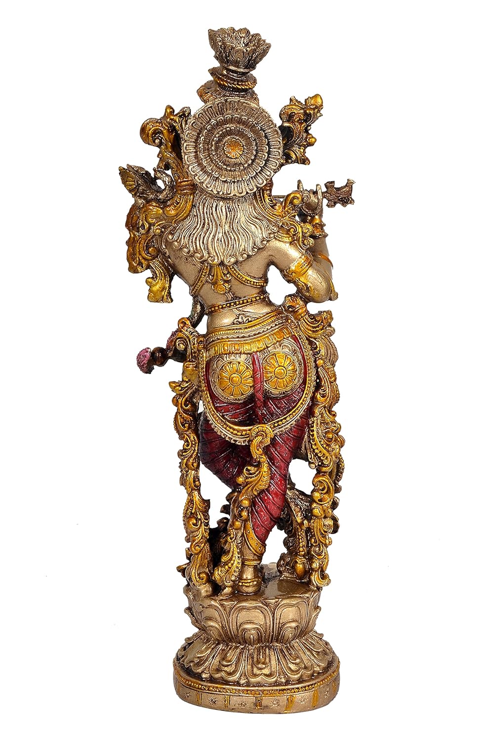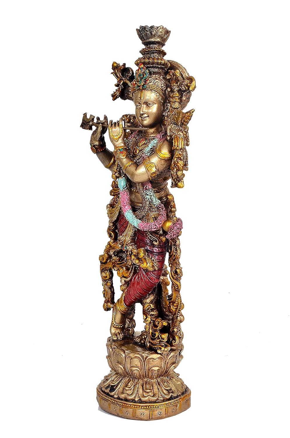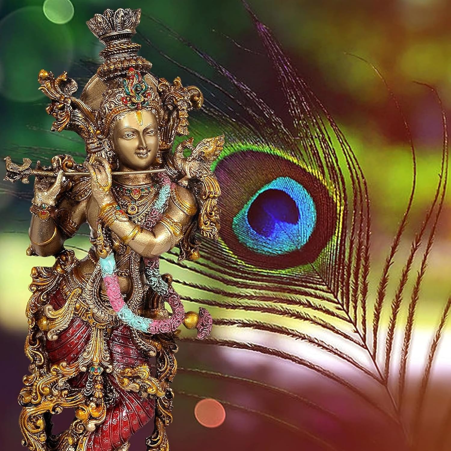 Majestic 14-Inch Presence: Perfectly sized to make an elegant statement in your living room, meditation space, or sacred altar. The intricate posture of Krishna standing cross-legged, flute in hand, reflects both peace and enchantment.