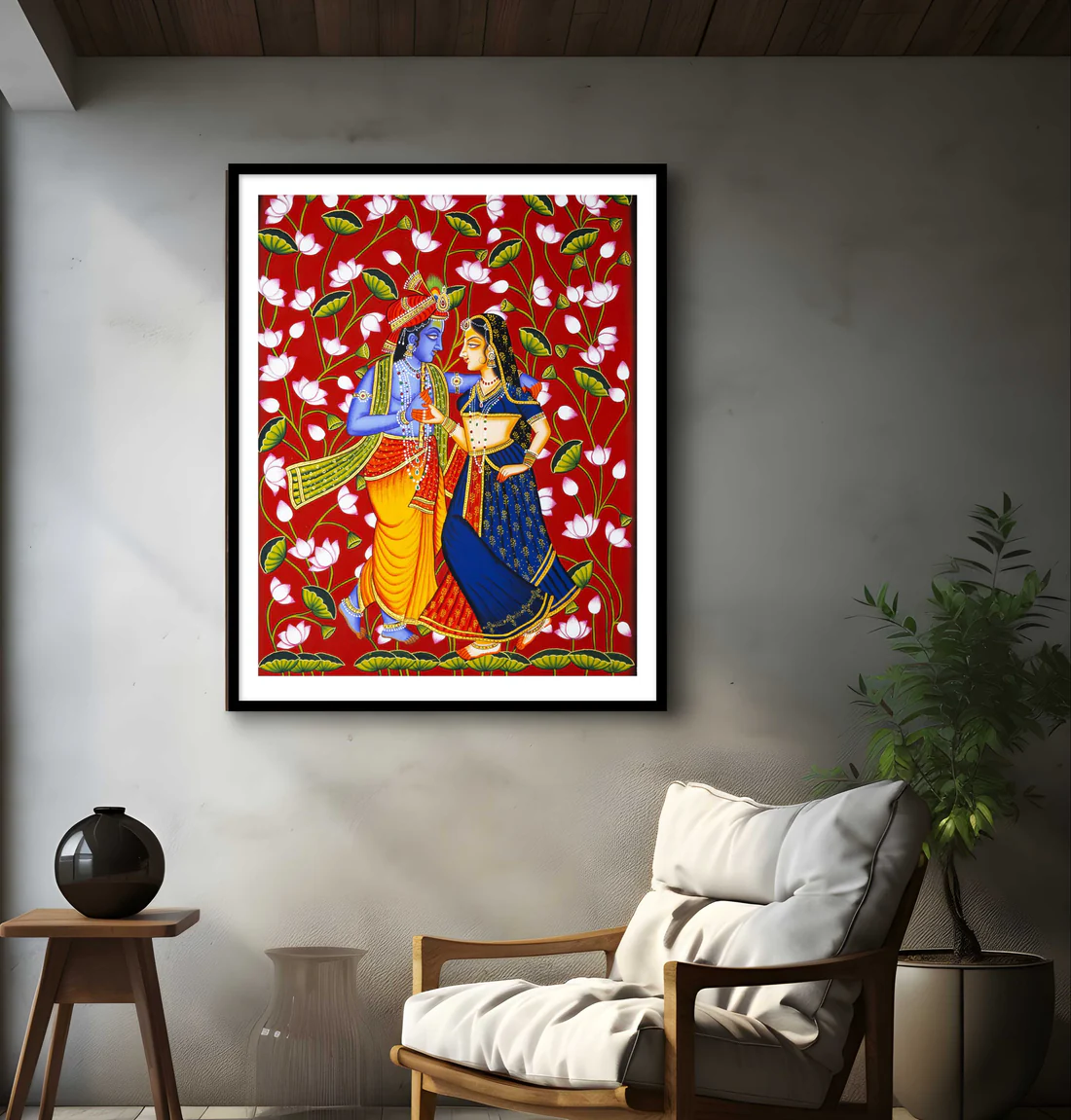 It’s a divine story in colour, a timeless expression of love beyond the physical realm. Bring home this sacred art, and let devotion bloom in every corner of your space.